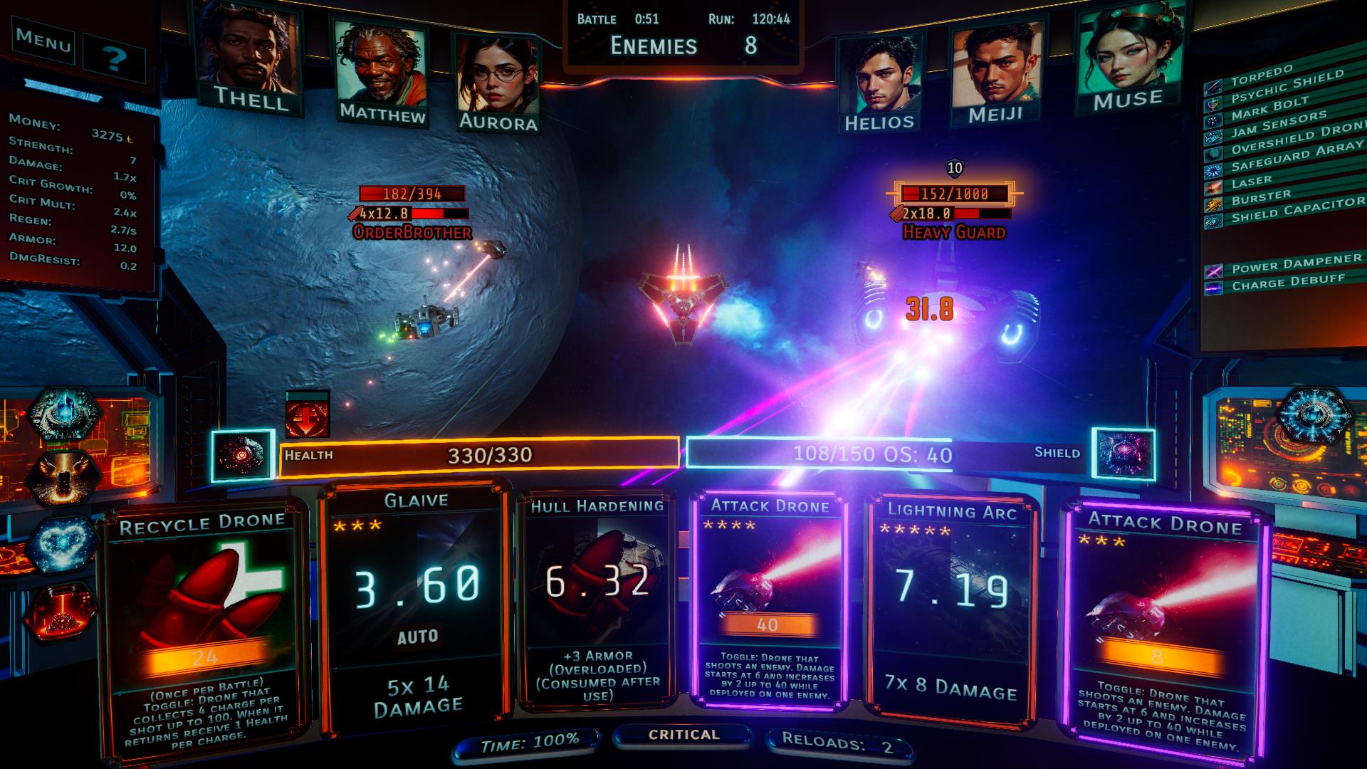 Void Grimm is a real-time deckbuilding roguelike game where you fight your way through waves of enemy spaceships. Your survival in the fast-paced battles requires quick thinking even at increased adrenaline levels. Gather your crew, optimize your deck and utilize card synergies to master your runs. Multiple ships, heroes and meta progression upgrades keep replayability fun and rewarding.Combat Mechanics: