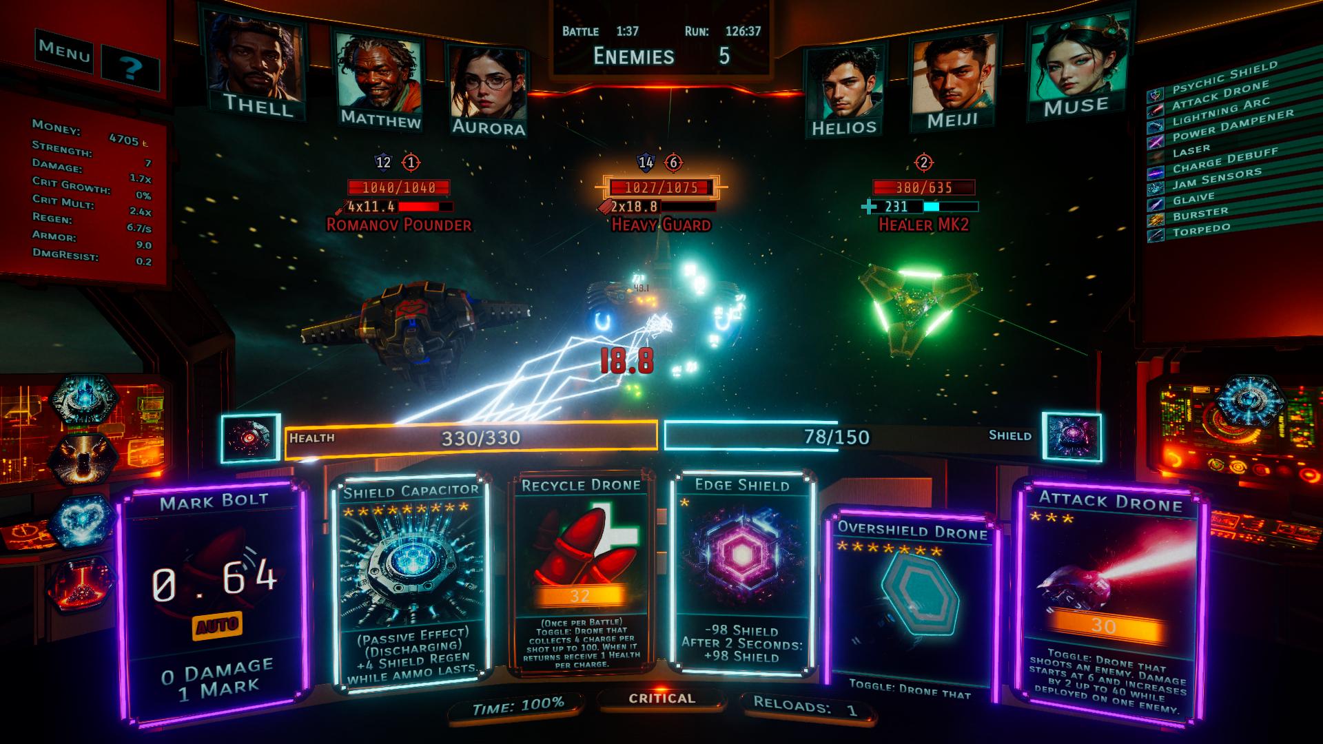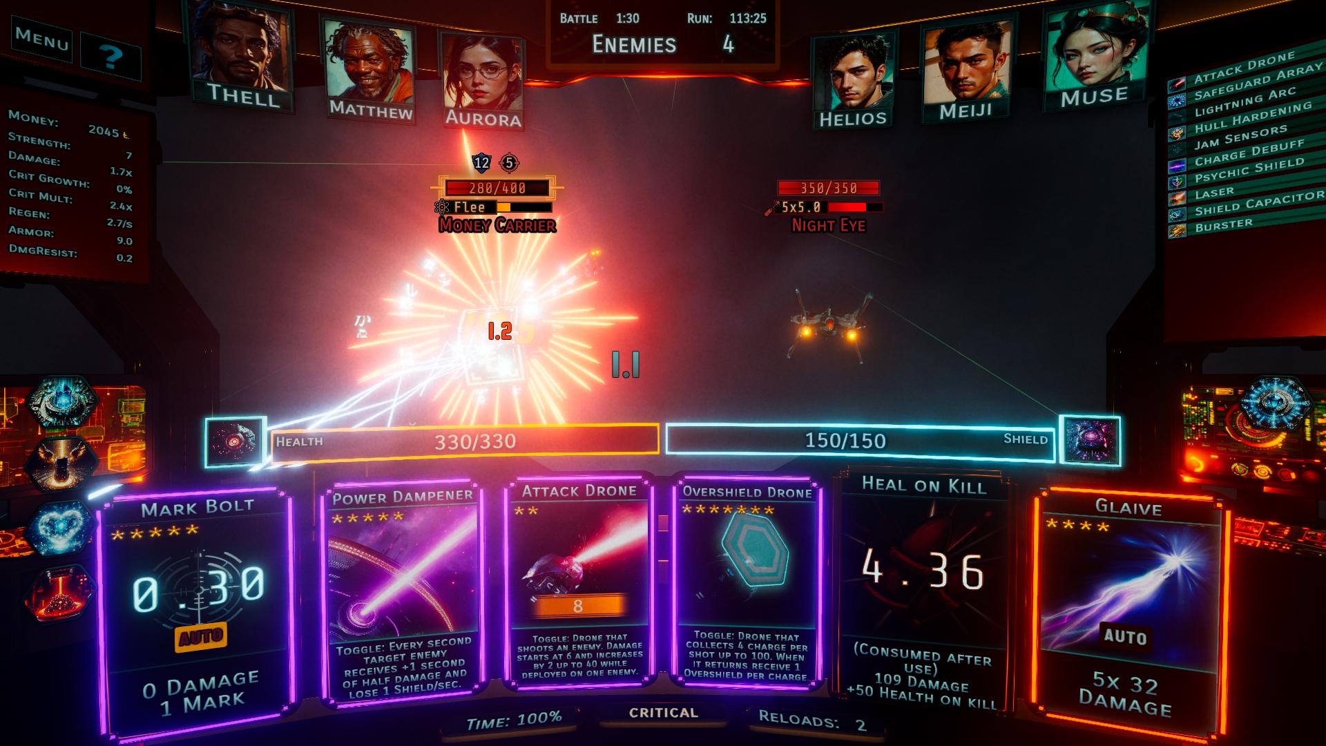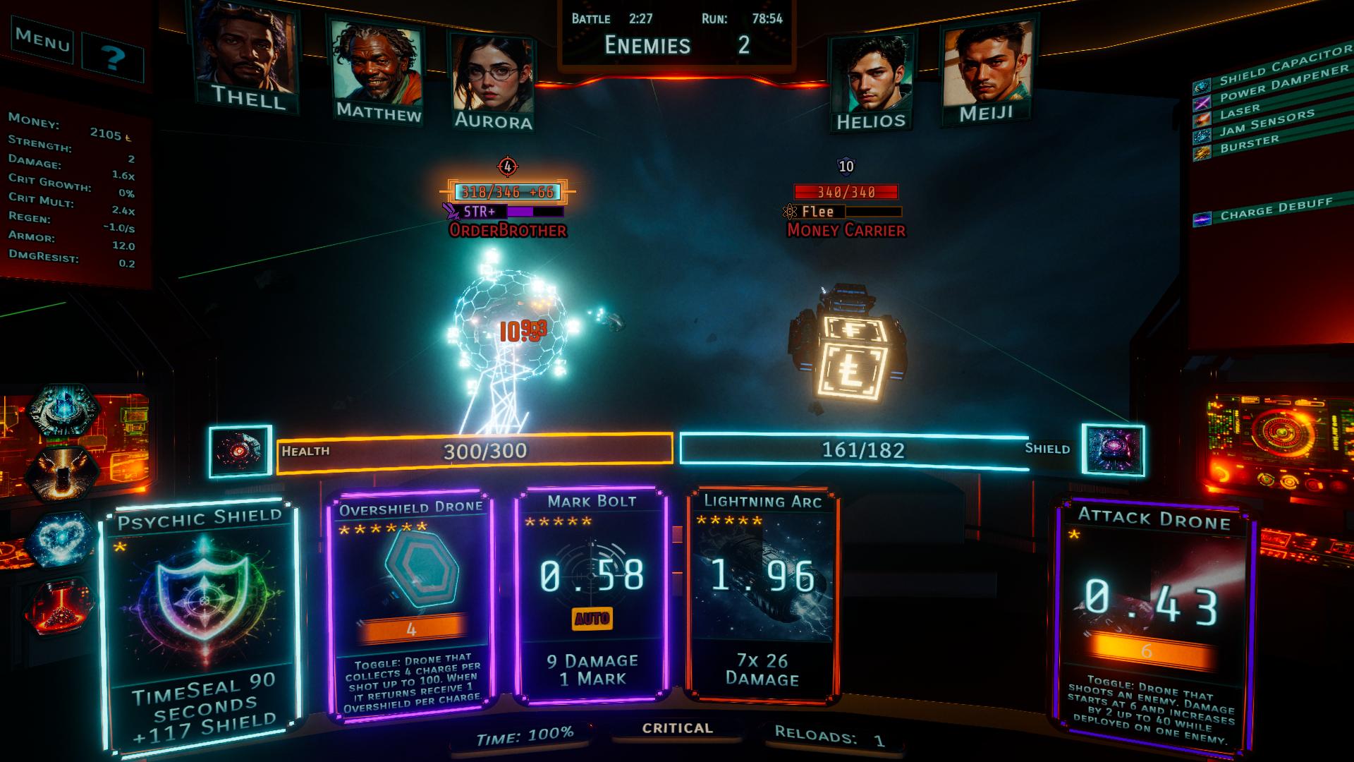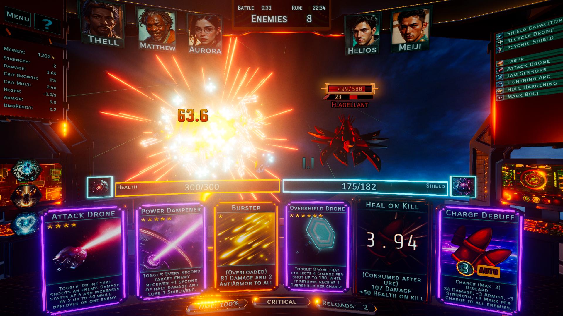 Void Grimm is a real-time deckbuilding roguelike game where you fight your way through waves of enemy spaceships. Your survival in the fast-paced battles requires quick thinking even at increased adrenaline levels. Gather your crew, optimize your deck and utilize card synergies to master your runs. Multiple ships, heroes and meta progression upgrades keep replayability fun and rewarding.Combat Mechanics: